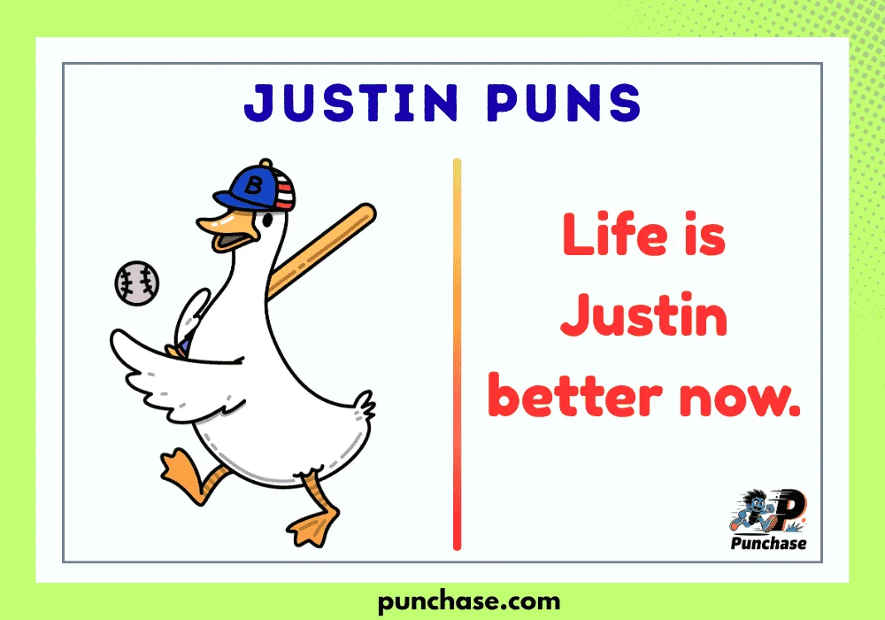 These Justin puns are short, clean, and easy to use. They are perfect for Instagram captions, travel photos, birthday cards, and fun chats with friends. If the name is Justin, the jokes are just right.
