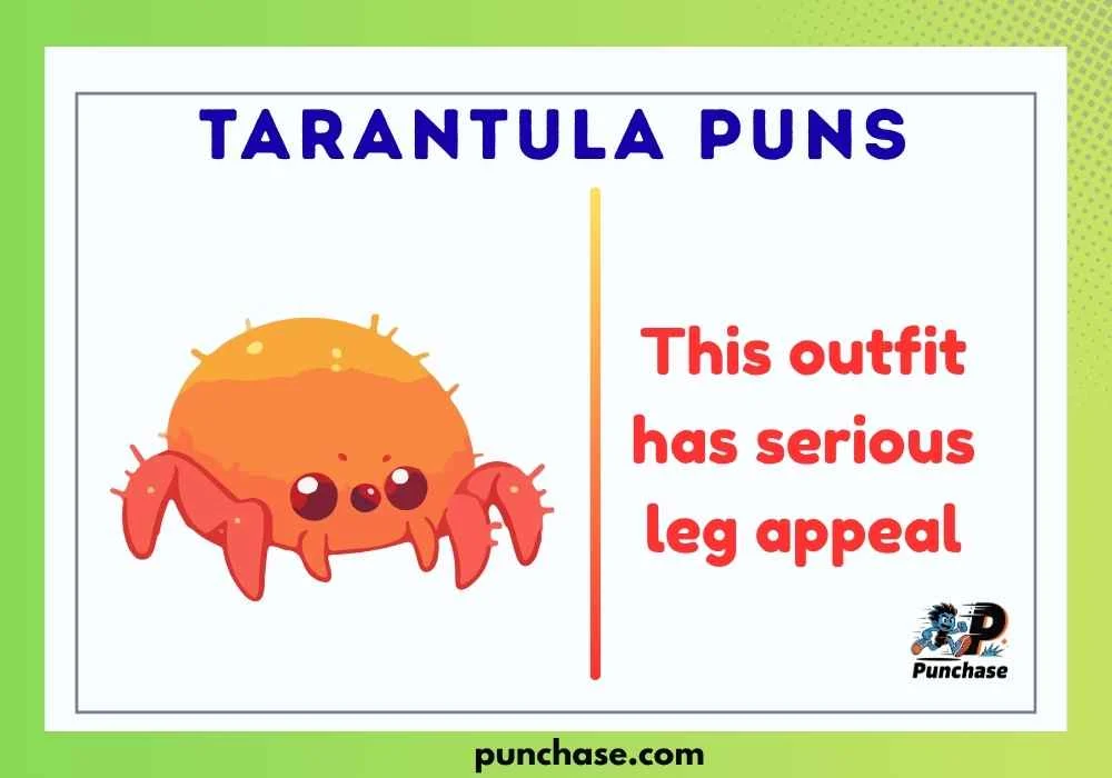 Tarantula puns are jokes or wordplays inspired by tarantulas, often using themes like webs, crawling, and legs in a funny way.